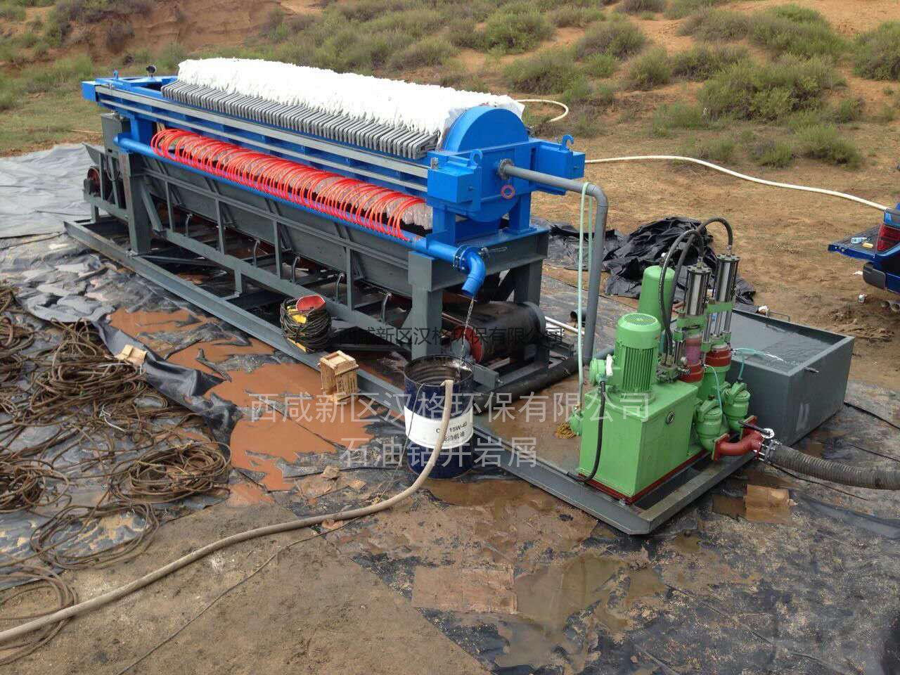 運行情況:該項目使用YB250-30液壓柱塞泥漿泵5臺,XYZG300-125壓濾機5臺,日處理打樁污水污泥2000噸,打樁污水污泥經(jīng)過振動篩過濾將5毫米以上碎石和雜質(zhì)除掉,然后加藥沉淀,沉淀后污泥經(jīng)過柱塞泥漿泵進(jìn)入壓濾機過濾,過濾壓力10公斤經(jīng)過30分鐘過濾,濾餅含水率達(dá)到20-25%左右,泥餅成型即可卸料。